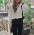 Sweet Mori Girl Pure Cotton V-Neck Long Sleeve Blouse