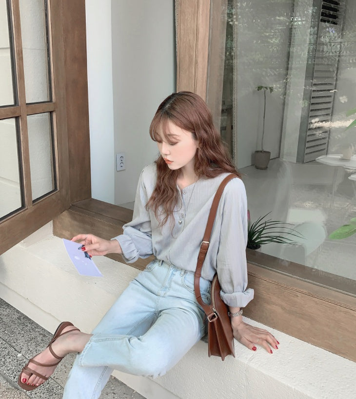 Sweet Mori Girl Pure Cotton V-Neck Long Sleeve Blouse